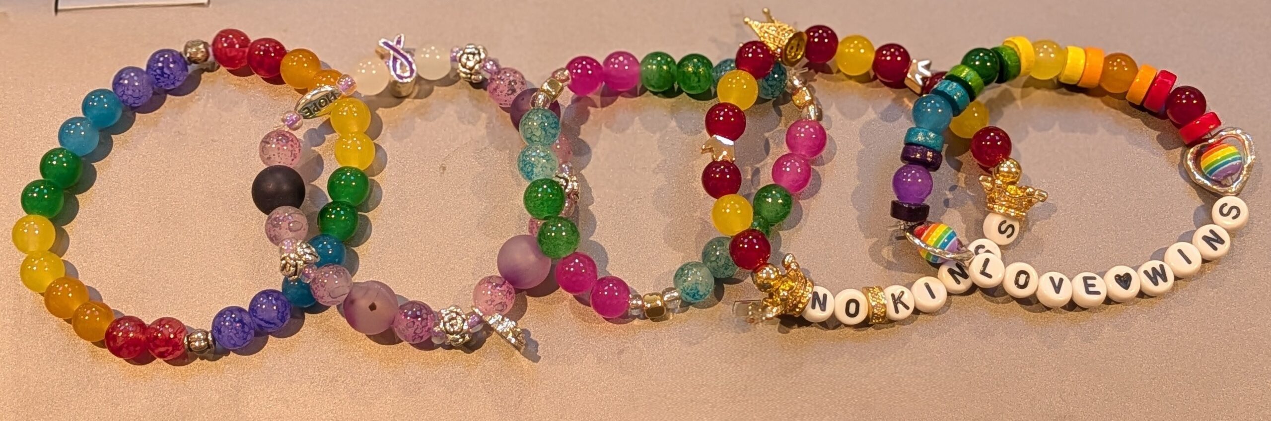 Discover our handmade bracelets that blend glass beads, meaningful messages, and charming animal motifs to celebrate pride and progressive values with style and heart.